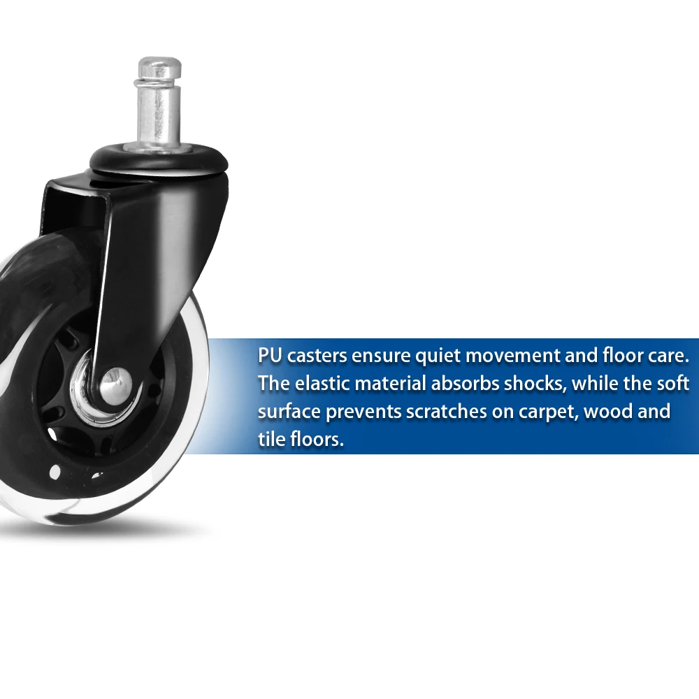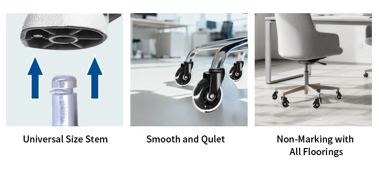 Feature: Durable, Floor Protection, Ergonomic Performance, Locking Mechanism, Low Temperature Resistance, Maintenance Free, No Marking, Quick Release System, Shock Absorption, Sealed Bearings, Silent Operation, Wear Resistance, Vibration Reduction, Vibration Damping