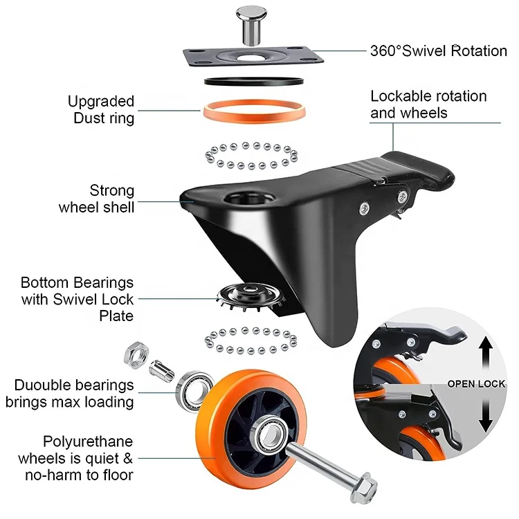 Caster Brake Type: No Brake Included, Side Pedal Brake, Swivel With Brake, Total Lock Brake